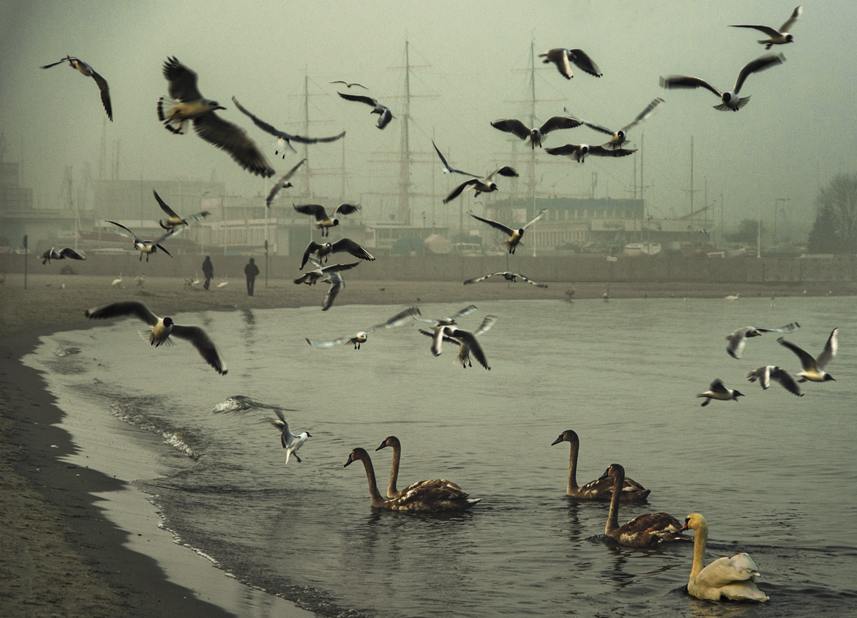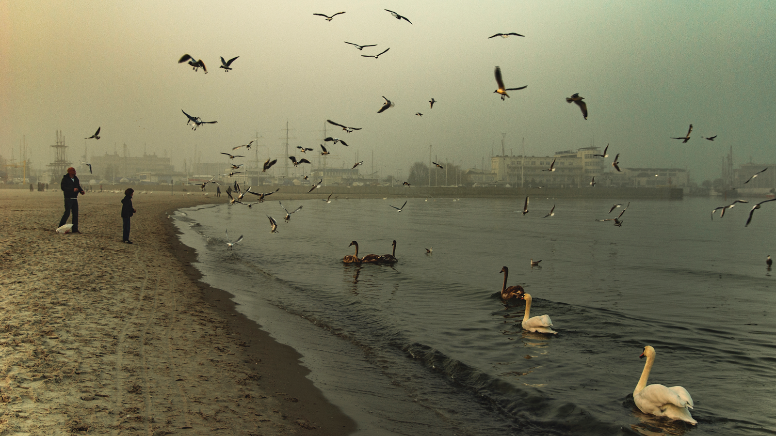 Hitchcock, Ptaki (w Gdyni), koloryzowane Gdynia, plaża miejska